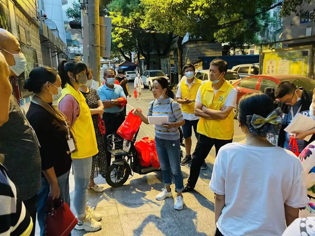 ▲社区党委带领志愿者、自管党员、党员中心户等集中开展大规模入户意见调查