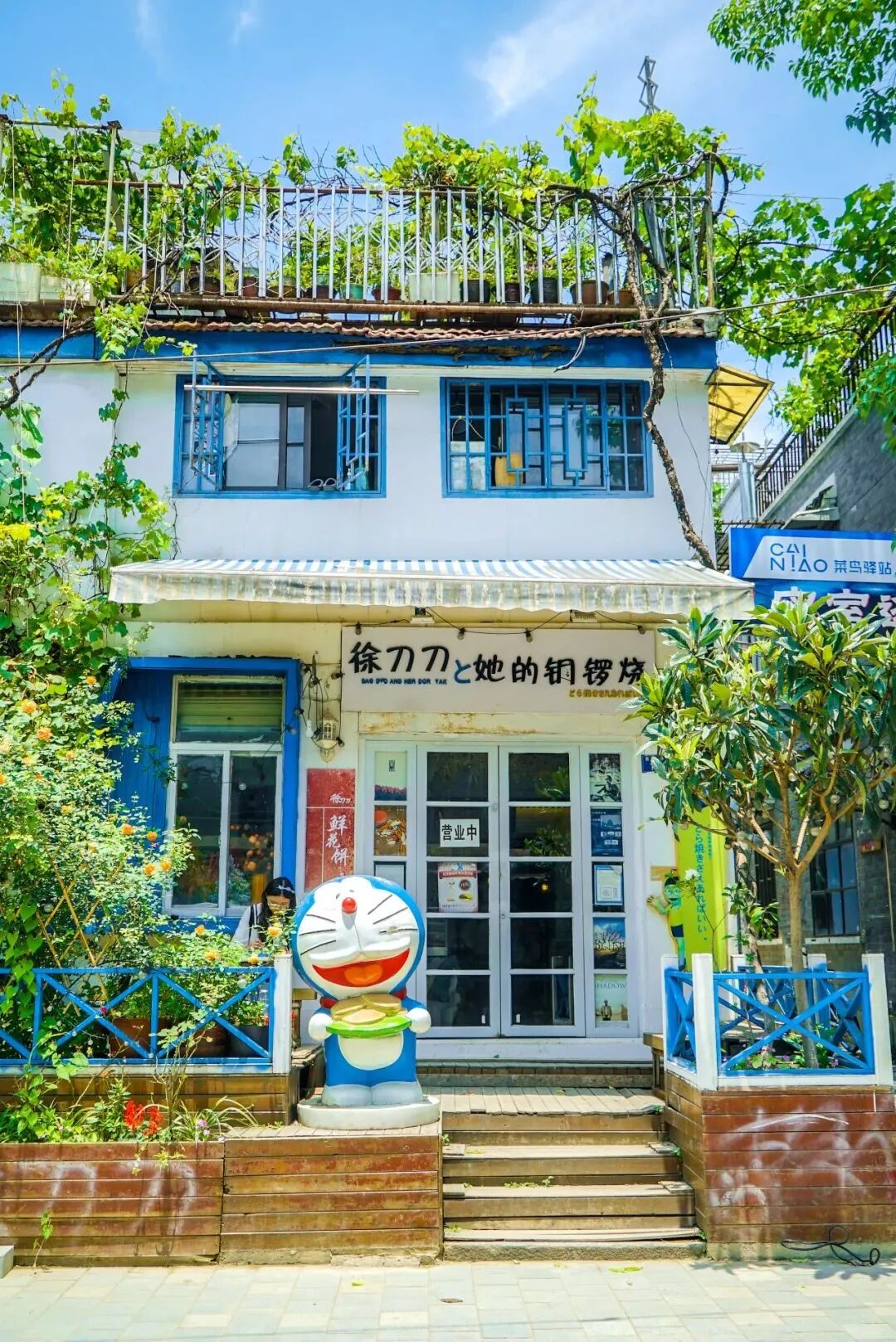 笑口常开的哆啦A梦总会在「徐刀刀和她的铜锣烧」店铺前热情与过往的每一个人“打招呼”。