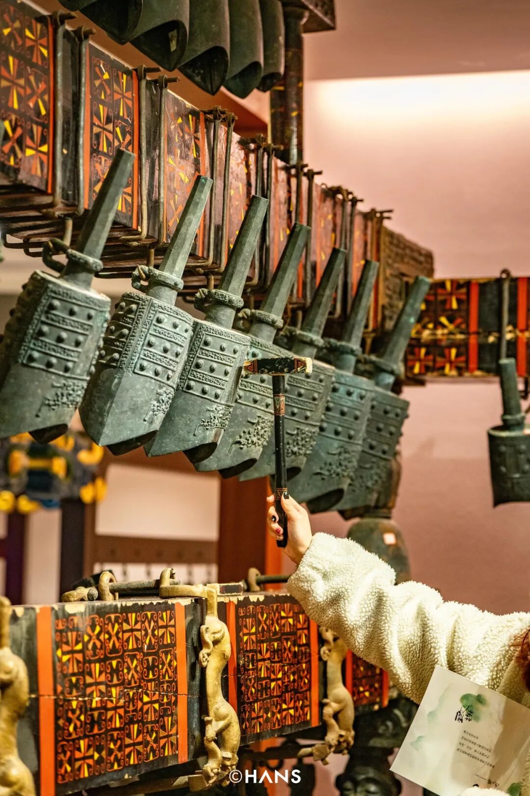 省博的编钟只可远观,武音馆内的编钟却可看可摸,还可以上手敲,亲自感受来自战国时期的千古绝响。