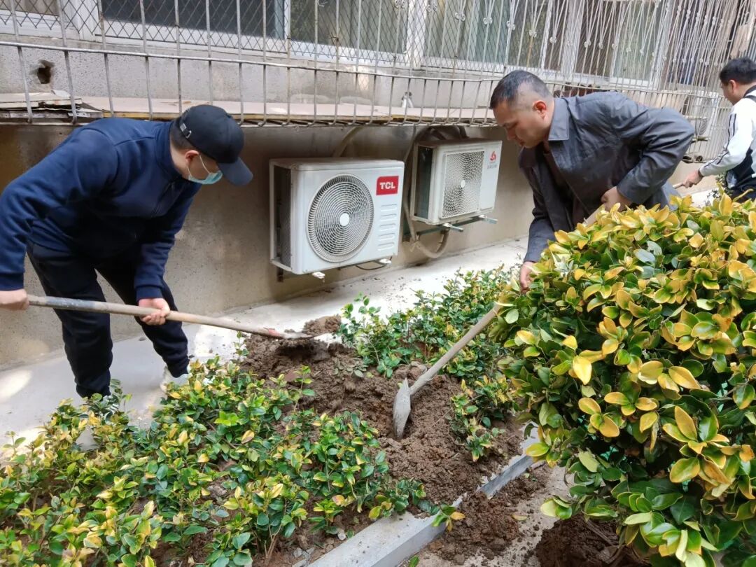 ▲岭尚红志愿服务队开展美化银海小区补栽树木活动