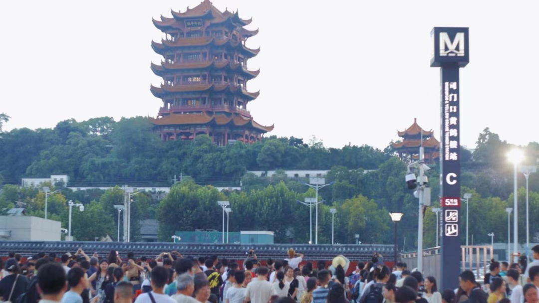▲今夏人山人海的黄鹤楼(央广网发 邓子依 摄)
