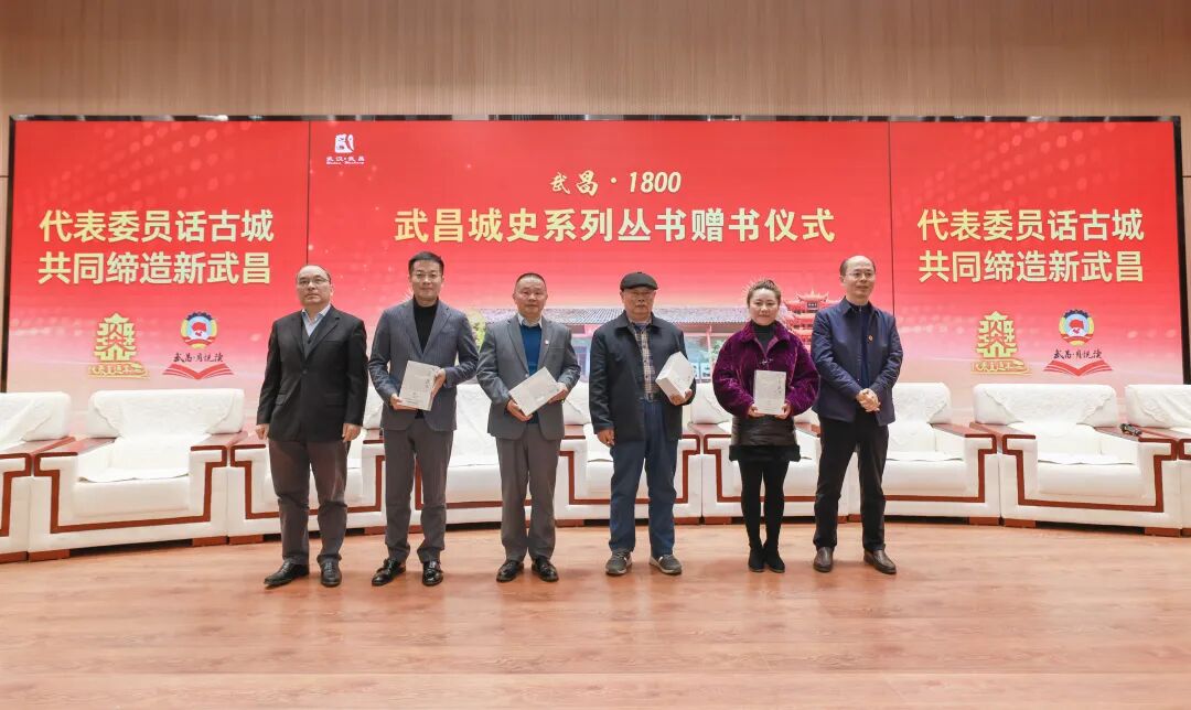 区人大常委会党组书记、主任胡太荣,区政协党组书记、主席王兴文向武汉市第十四中学、粮道街昙华林社区、企业代表、粮道街居民代表赠送武昌历史文化丛书。