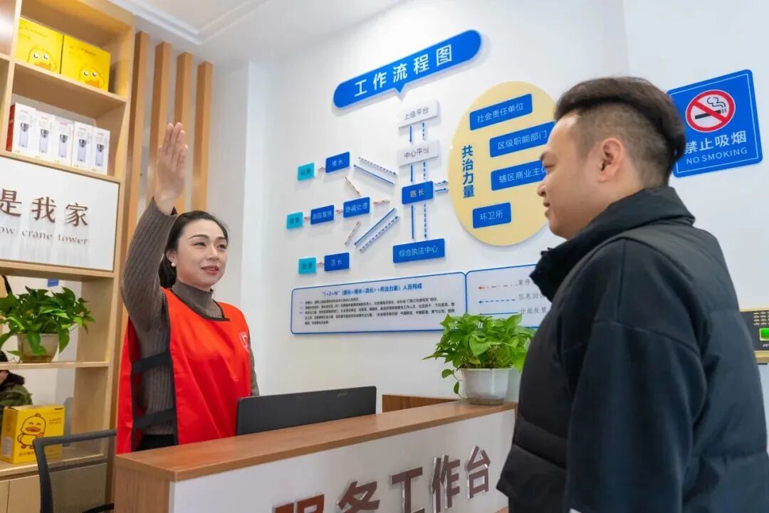 为深入贯彻市、区路长制工作职责,黄鹤楼街综合执法中心不等不靠,向前一步。以“共谋、共建、共管、共评、共享”的共同缔造理念,构建起“商户联盟、路长、社区”三位一体的管理模式,共同打造“黄鹤楼下是我家”的良好营商环境。