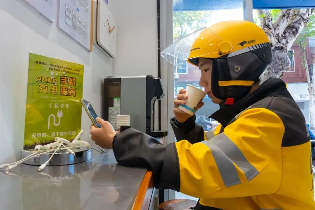 “我能在这充会电吗?出门忘带充电宝了,手机快没电了?”路长工作室进来一位快递小哥寻求帮助。服务工作台的值班人员不仅热情邀请小哥进来充电,还为他暖心递上一杯热水。