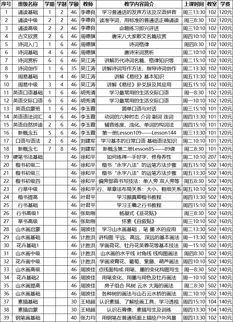 1、学员报名须慎重,请根据自己的兴趣爱好、身体状况,上课时间来选择班级报名。报名后不办理转班、退费手续。不得转让他人顶替听课。