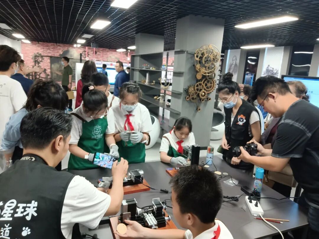 ▲辖区单位武昌区珞珈山小学学生代表参观科普馆,手工制作工艺品