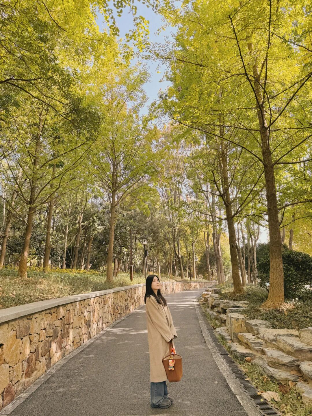 脚边是散落的银杏黄叶,抬头是高耸入云的树,身旁各种绿植争宠般探出脑袋,偶遇的鸟儿们唱出曼妙的歌曲,身边的小狗也上演着森系大片。