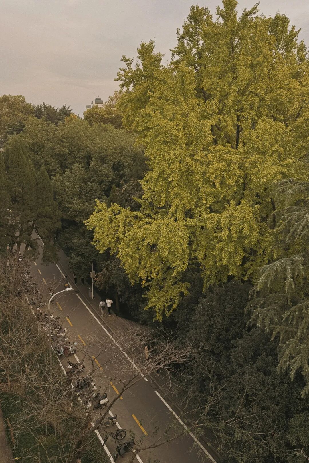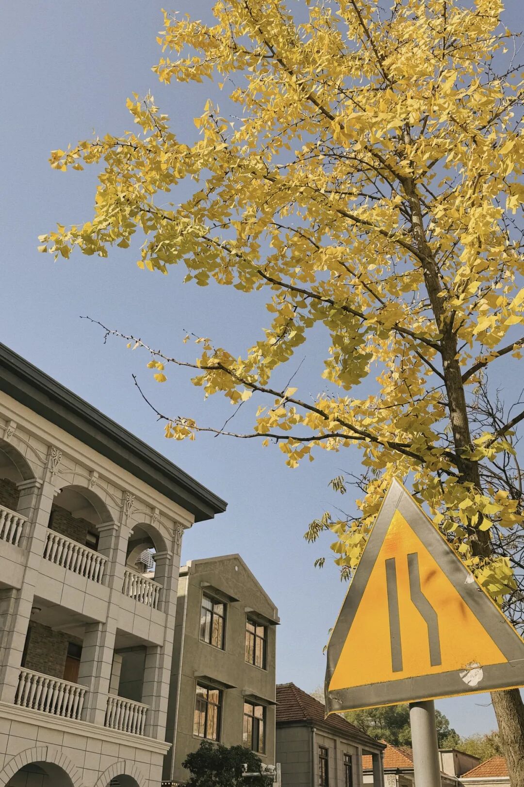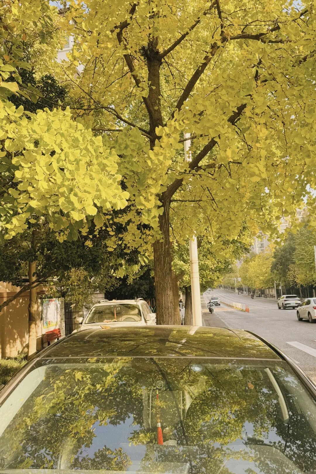 路上的银杏有着各自不同的韵味。有的诗意悠悠,透着书卷气;有的历史感浓重,飘散古朴禅意;还有的枝叶密密叠叠,宛如山水画中的世外之地。