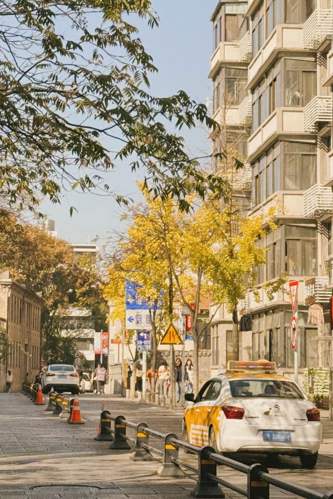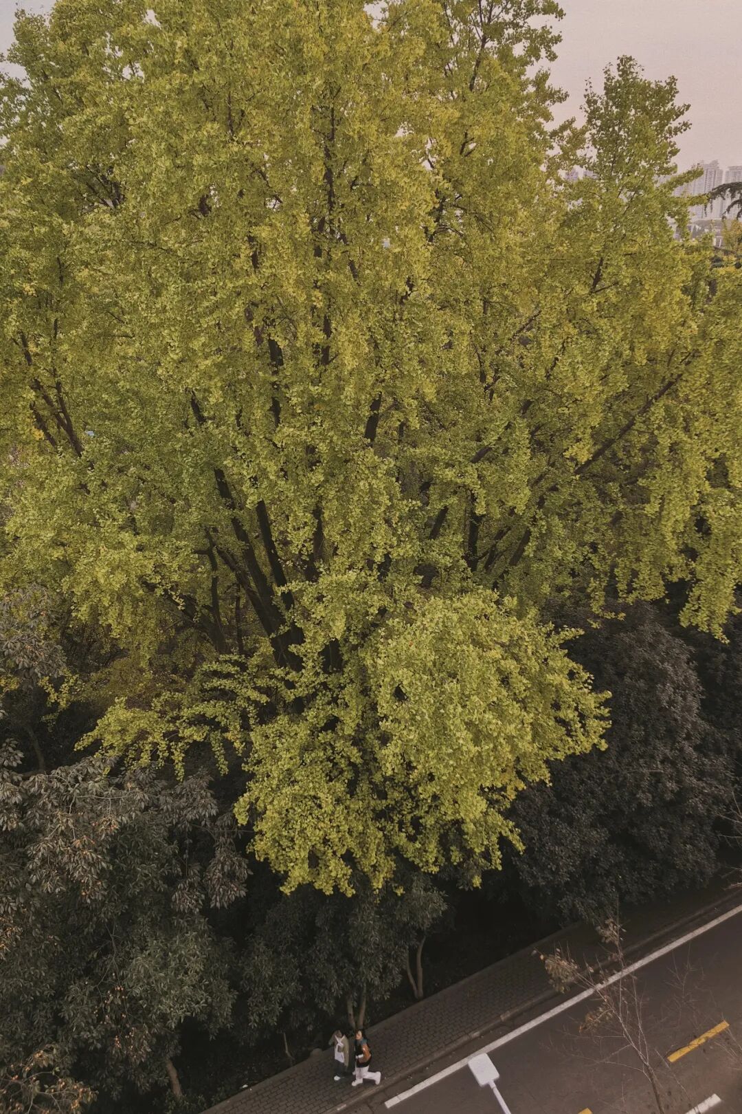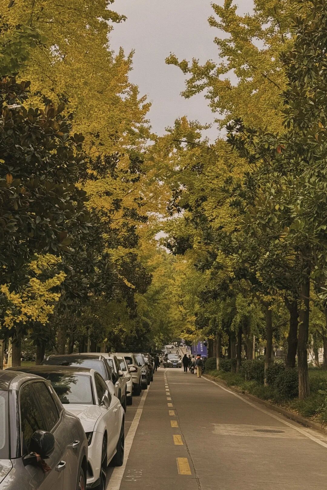 路上的银杏有着各自不同的韵味。有的诗意悠悠,透着书卷气;有的历史感浓重,飘散古朴禅意;还有的枝叶密密叠叠,宛如山水画中的世外之地。