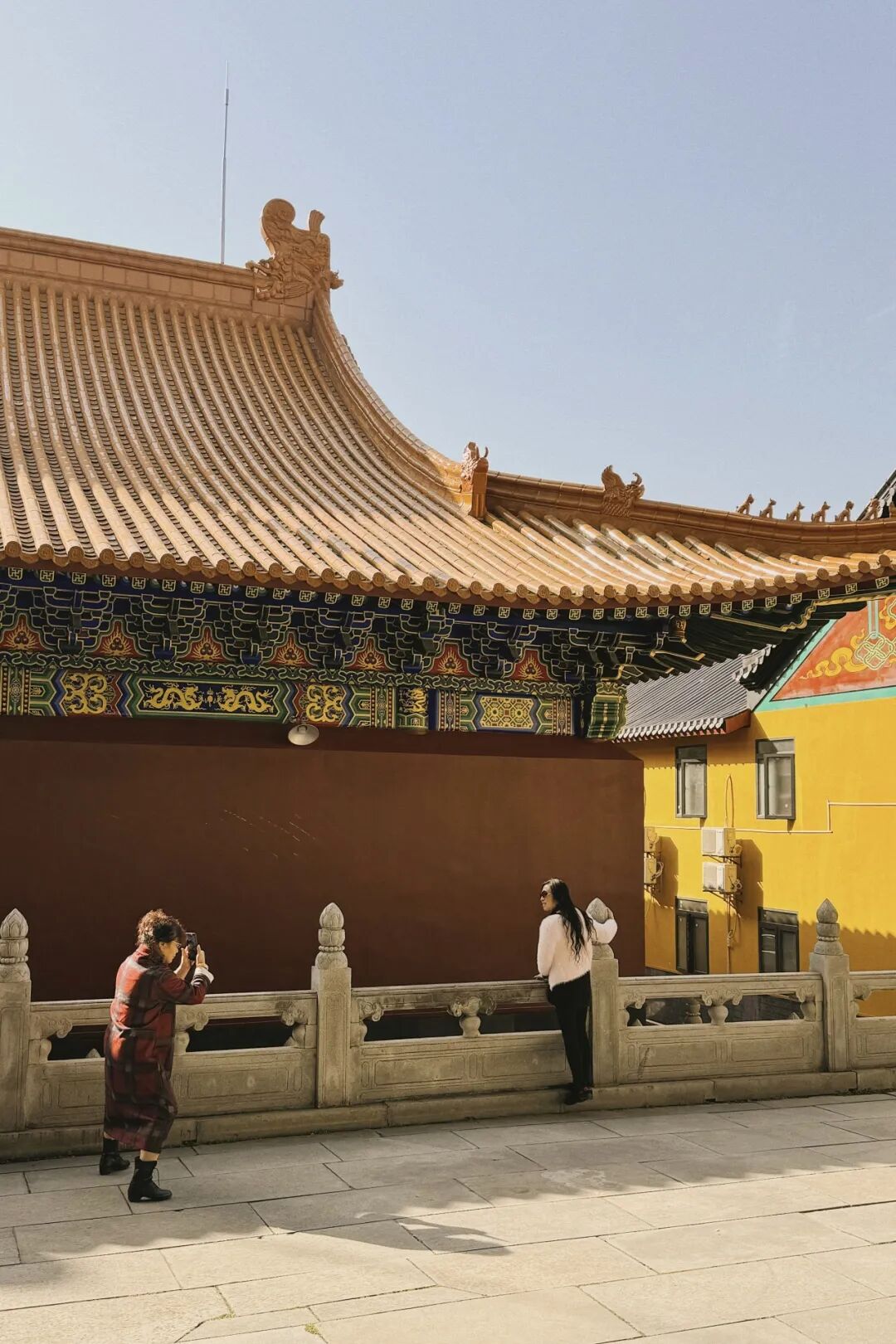 踏着阵阵檀香,走出喧闹的车站,明黄的外墙,朱红的斗拱便映入眼帘。