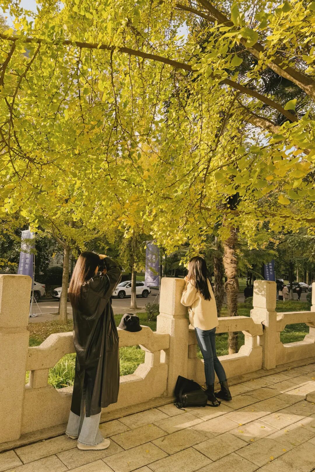美好事物总能疗愈人心,走到草坪里,大家都很默契地拿起相机、手机记录在银杏树下的瞬间,定格一张张「人生照片」。