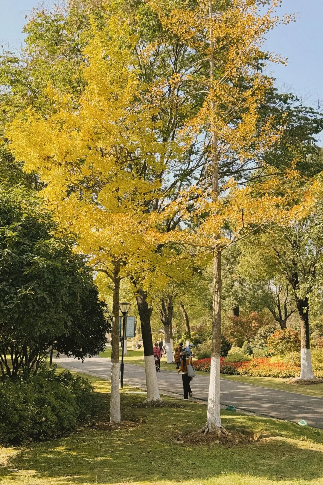 沿着林间步道一路前行,左右两旁的银杏在风中轻轻摇晃,这样的沙湖公园仿若一幅鲜亮的油画,在冬日的冷调背景下显得格外温暖。