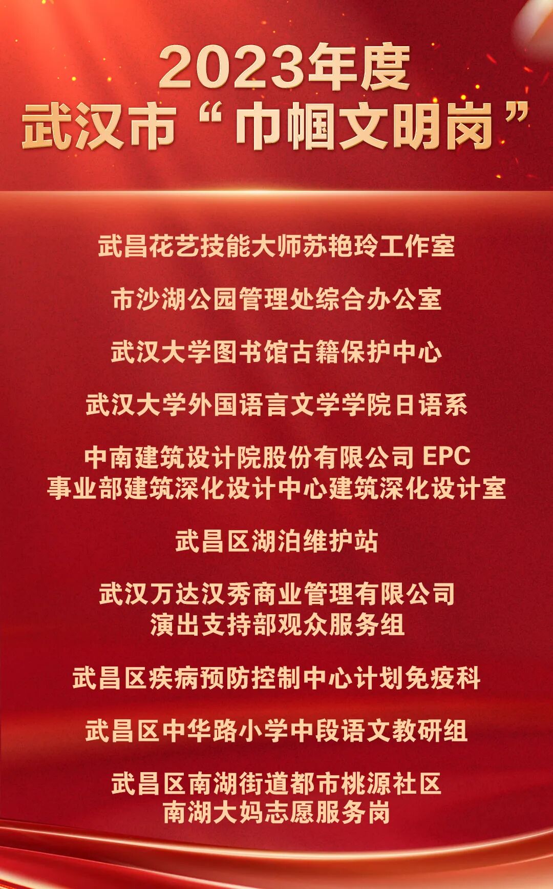 近期,武汉妇女“巾帼建功”活动领导小组办公室认定了2023年武汉市“巾帼文明岗”及“最美岗花”并公布名单。武昌区10个岗位被认定为市级“巾帼文明岗”,8名个人被认定为“最美岗花”。