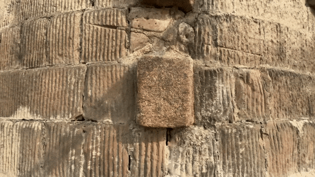 遗存着24块凸出于石壁的方形条石