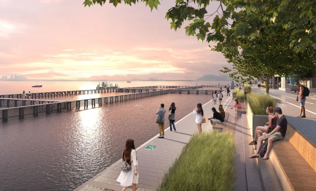 最受市民关注的凌波门将适当拓宽临湖亲水平台,布置多级观湖台阶,保持原有东湖游泳场风貌,对水域铺砌进行优化,加固现有栈桥。