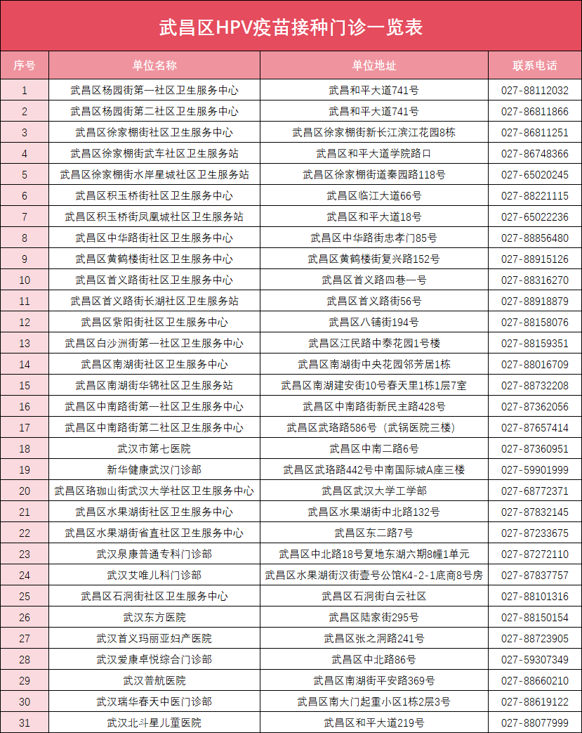 适龄女性可直接到武昌区各预防接种门诊咨询和接种国产二价HPV疫苗。