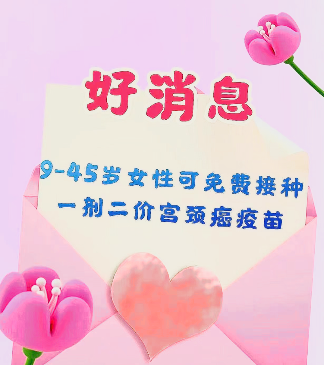即日起至活动名额人满,所有9-45岁女性接种国产二价HPV疫苗可享受每人减免一剂疫苗费用特惠,活动名额3000人,赶紧预约起来吧!