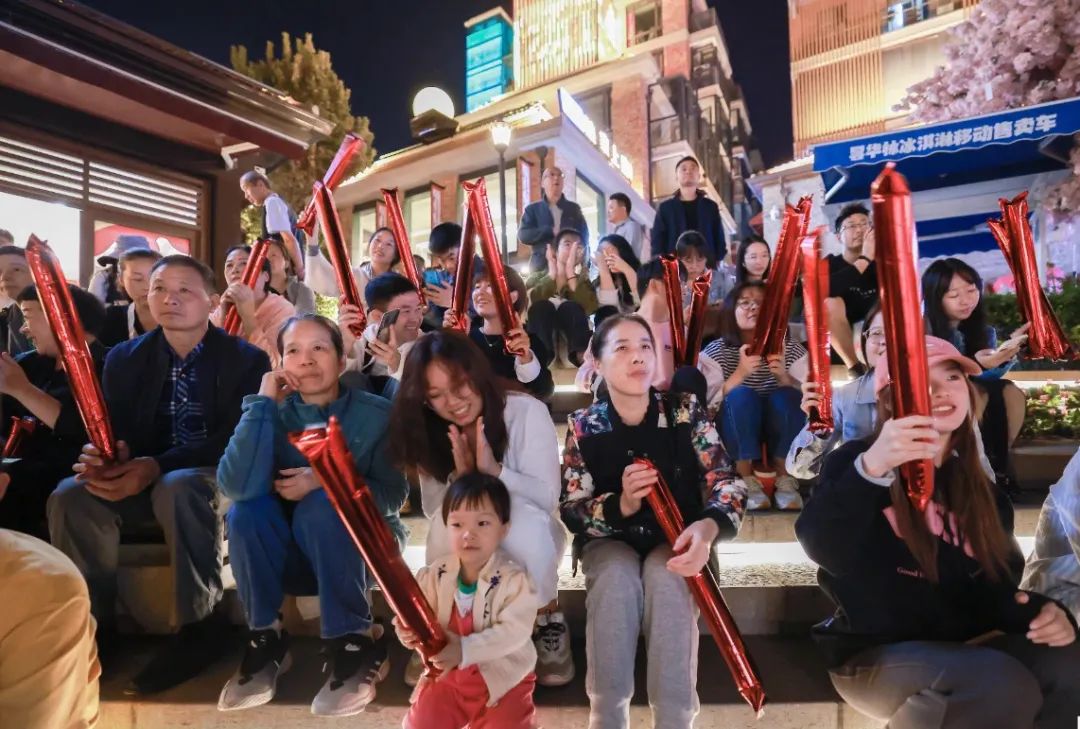 ▲“可视电台”国庆专场,市民游客纷纷挥舞手中的红色气球棒。图源:长江演播中心
