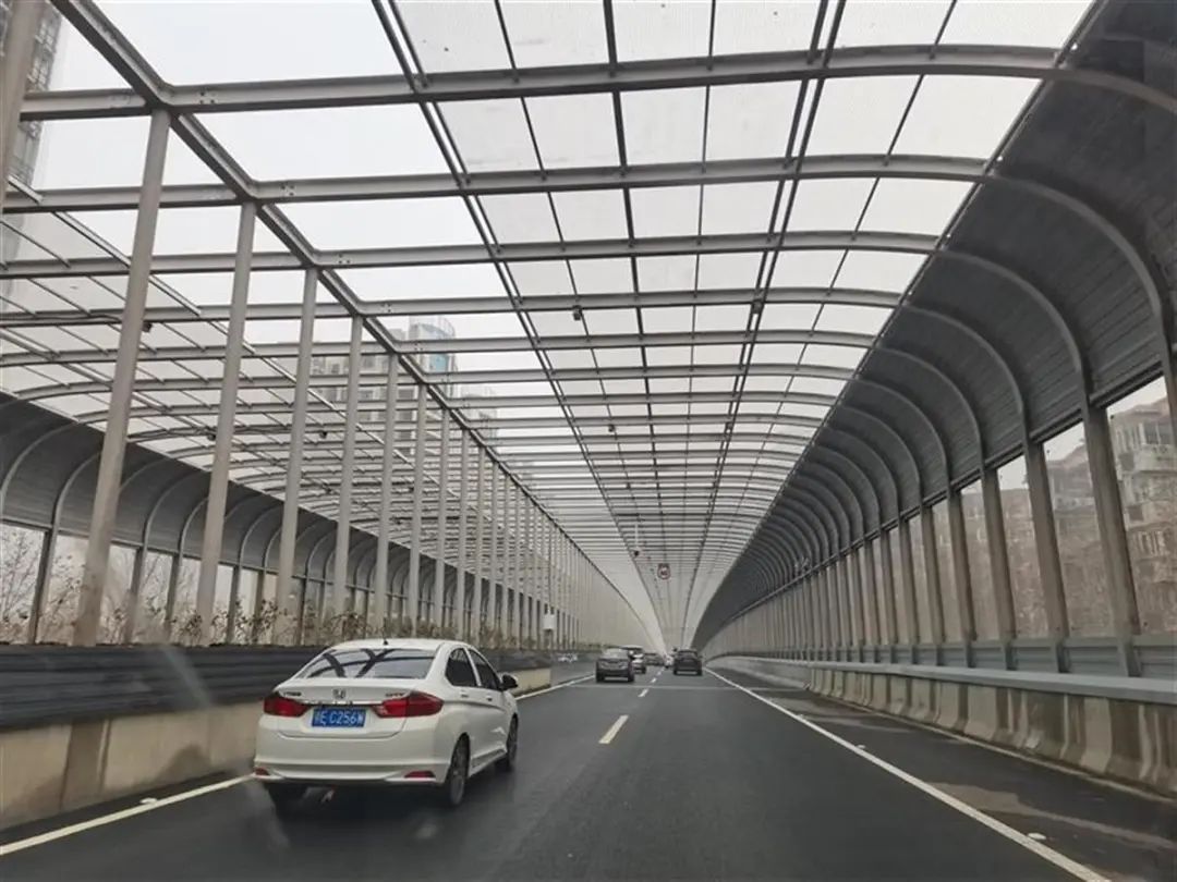 建设中,项目二标段,中建三局项目团队打造了湖北省规模最大的复合式互通立交,让二环线和友谊大道两条城市主干道实现互通;在该项目三标段,汉阳市政团队克服上跨在建地铁12号线地下车站结构难点,优化钢箱梁临时支架支撑体系并采用钻孔灌注桩进行基础加固方案;值得一提的是,项目在中国一冶承建的四标及武汉市政集团承建的五标各选取约300米试验段采用了光伏声屏障模块替代传统的亚克力声屏障,既可以达到降噪效果又具备发电功效,比传统的声屏障设备更节能、更环保,这是湖北首例光伏与市政工程结合的项目。