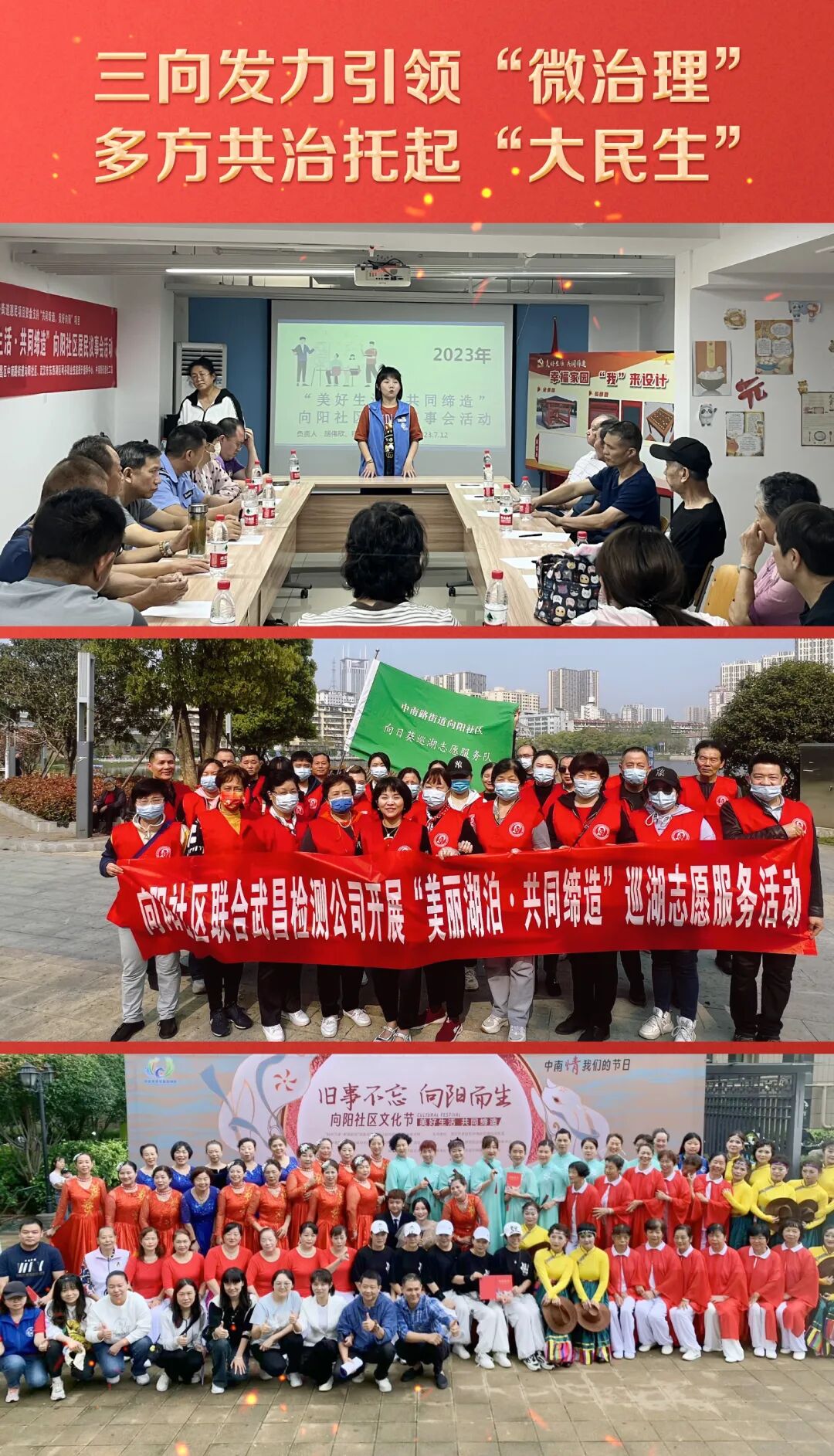 近年来,向阳社区从社区微治理实事入手,通过链接各方资源优势、搭建协商议事平台、开展多样特色活动“三向发力”,以痛点为支点、难点当试点、堵点变亮点,唱响美好环境与幸福生活共同缔造合奏曲。