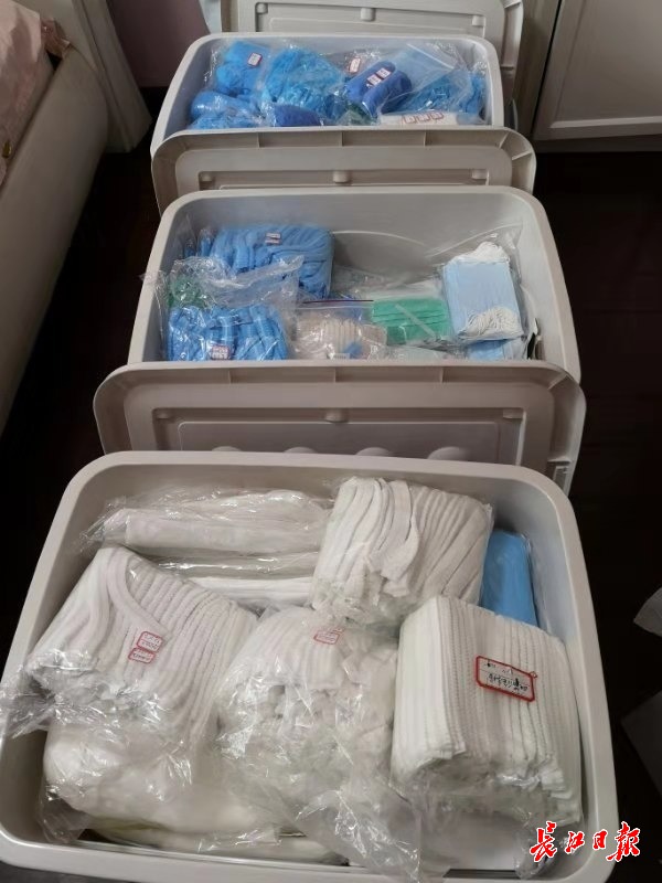 肖宏勋的爱人是武汉延廷贸易有限公司的负责人。据肖宏勋介绍,这家公司主要经营医疗防护用品和一次性用品出口贸易。“这次武汉遇到困难了,我们清理了一下库存,把用得上的全部都打包装好,希望能派上用场”。