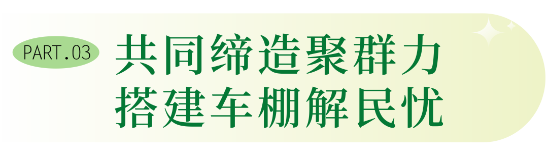 同时,动员小区居民对停车棚建设项目实效进行评价和反馈,掀起了“人人都做参与者、人人都当监督员”的热潮。真正的将服务进行延展,小区成果进行共享,居民群众唱主角,形成民众自治的良性循环,完美演绎了一曲共同缔造大合唱。