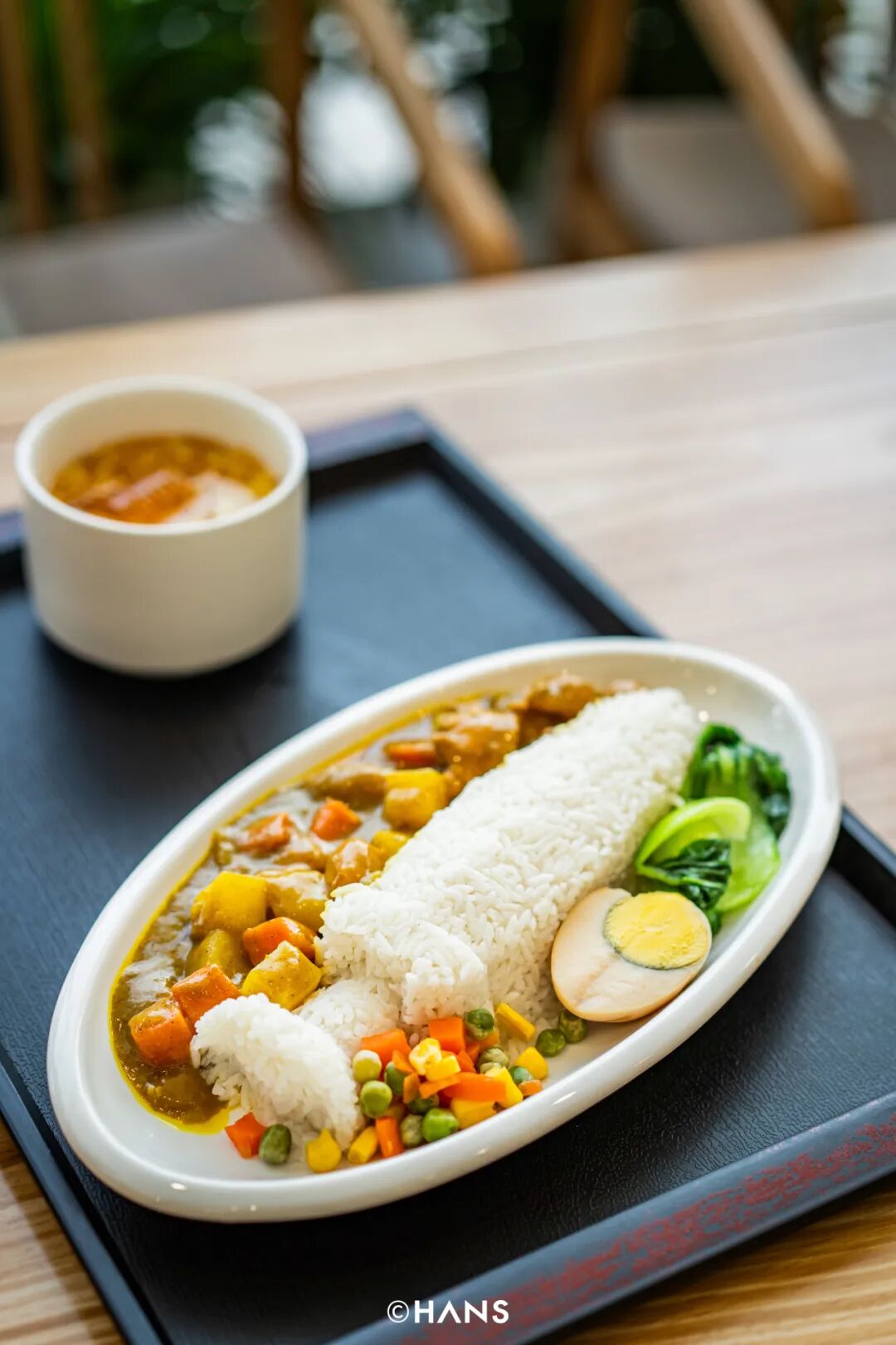 四楼“天外来客”餐厅的勾践剑盖饭,蛮多味道可以选择,咖喱鸡这款味道意外不错,编钟双皮奶晶莹剔透,舍不得动筷子。三楼微美咖啡除了曾经刷屏朋友圈的文创甜品,还新出了牛肉面,连卤蛋都是编钟的形状。