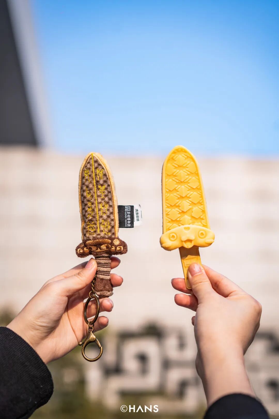 有人把“小胖剑”插在身上最显眼的位置,说“有剑了,已经不想跟没剑的人说话了”。有人甚至难以一睹“小胖剑”真容,比如我,三进三出都没买到,只好购入一把“小小小胖剑”挂在包上。