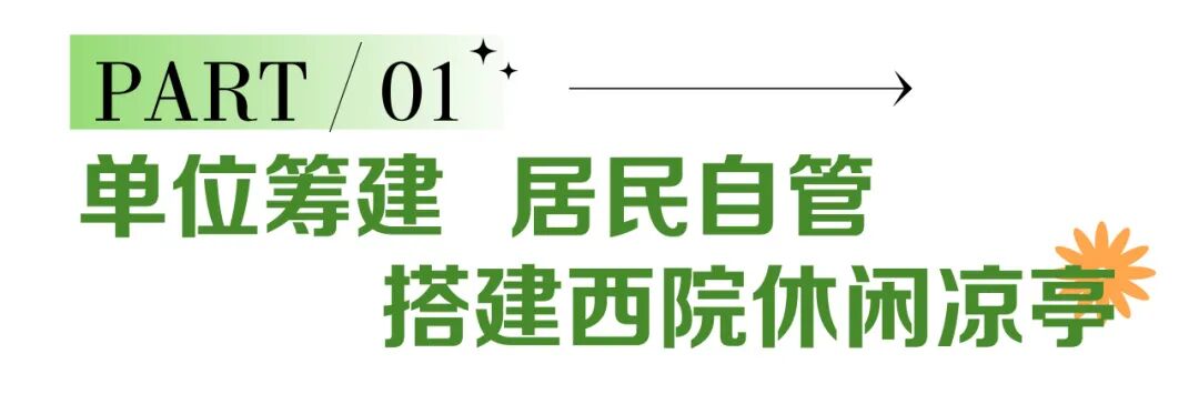 2023年以来,省公安厅社区党委多次召开居民议事会征求意见。部分居民反映,夏天阳光毒辣,院内缺乏能够遮阴避暑的好去处,而厅里老年居民较多,喜欢聚在一起聊天,希望社区可以修建休闲凉亭。在对诉求作了初步整理与可行性分析后,社区即刻与省公安厅共同商议解决办法,省公安厅将修建休闲凉亭实事项目纳入2023年规划。2023年8月,施工单位进场施工;同年8月底,项目完工。在项目落地后,社区探索居民自管模式参与休闲凉亭后续维护,即成立居民志愿服务队伍,发挥居民自治力量,由居民负责监督文明使用,并做好日常环境维护工作。