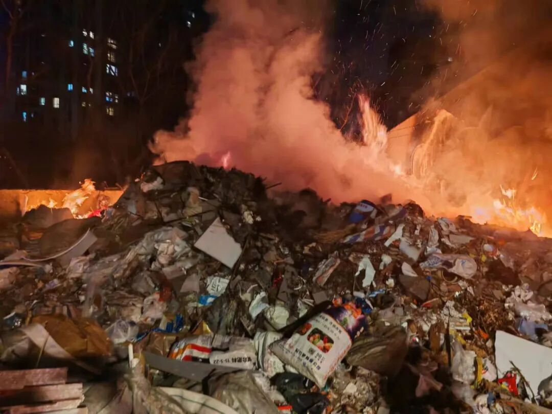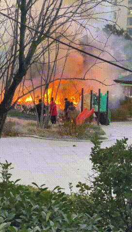 1月11日,浙江湖州。一小区室外垃圾堆起火,据物业监控显示,两名孩子在小区内燃放烟花爆竹,将未燃尽的烟花爆竹扔进垃圾堆后离开,这才引发了火灾。