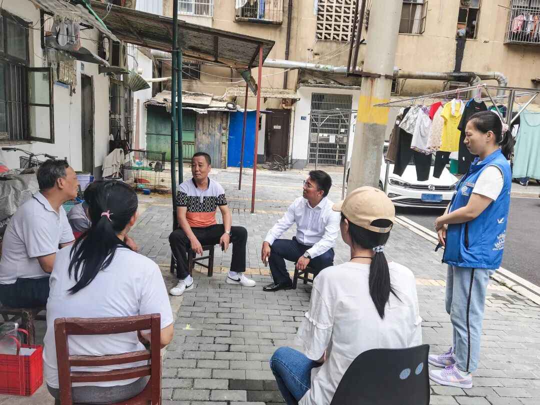 ▲人大代表徐海石与社区一起到小区与居民沟通天然气安装事宜