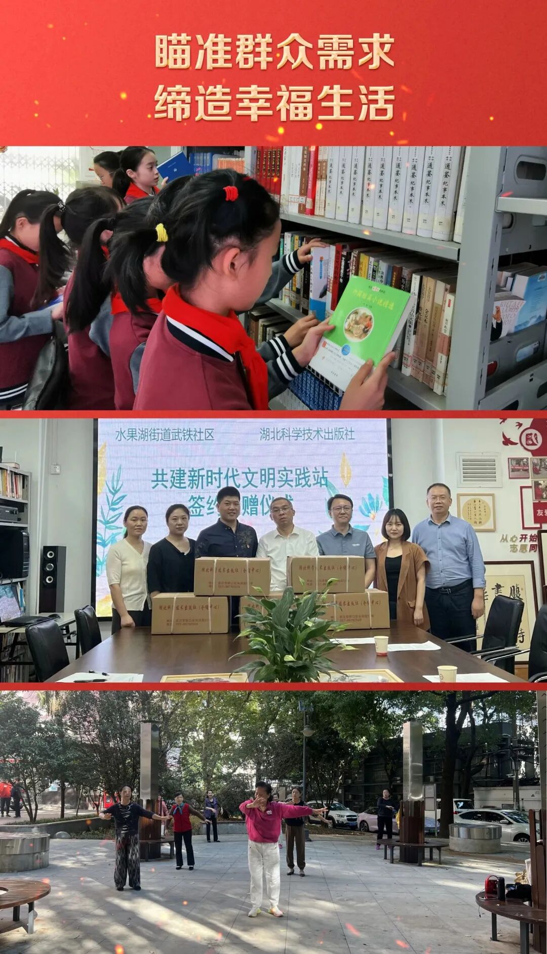 ▲湖北科技出版社向社区捐赠图书