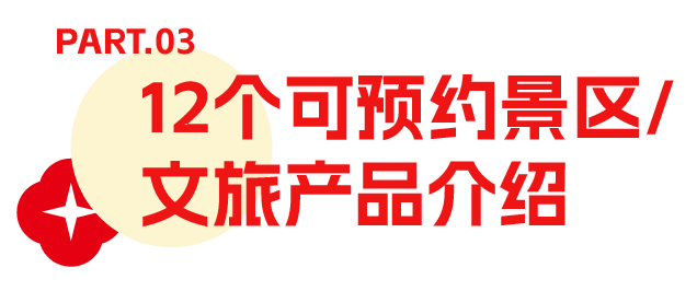 4) 可预约景区和文旅产品共12种,景区介绍、门票价格、交通、咨询电话、特色活动等信息见系统预约页面及下文。