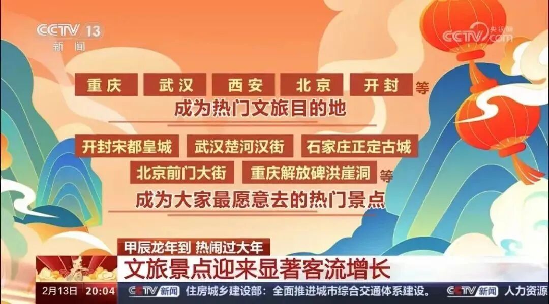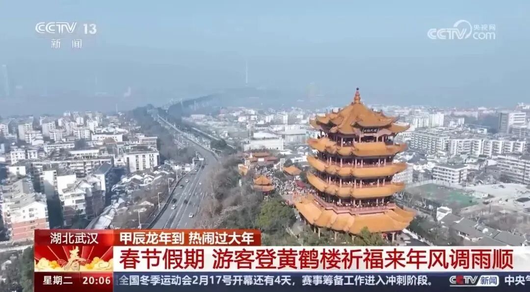 2月13日(大年初四),CCTV-13新闻《东方时空》《共同关注》《特别报道》3次推介黄鹤楼,直击游客登楼盛况。