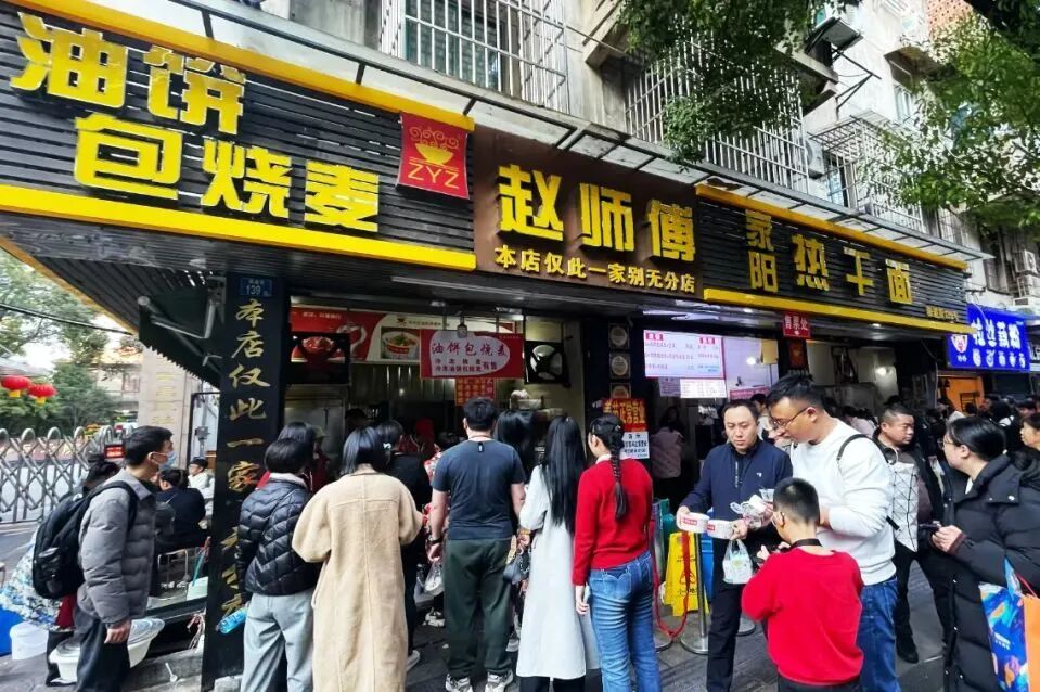 粮道街、红墙、青龙巷被游客们串成了一条逛吃游线。「粮道街」多家店铺生意红红火火,不少市民和游客品尝完美食,会走到「红墙」拍一张与黄鹤楼的同框照,然后逛逛旁边的「青龙巷」。