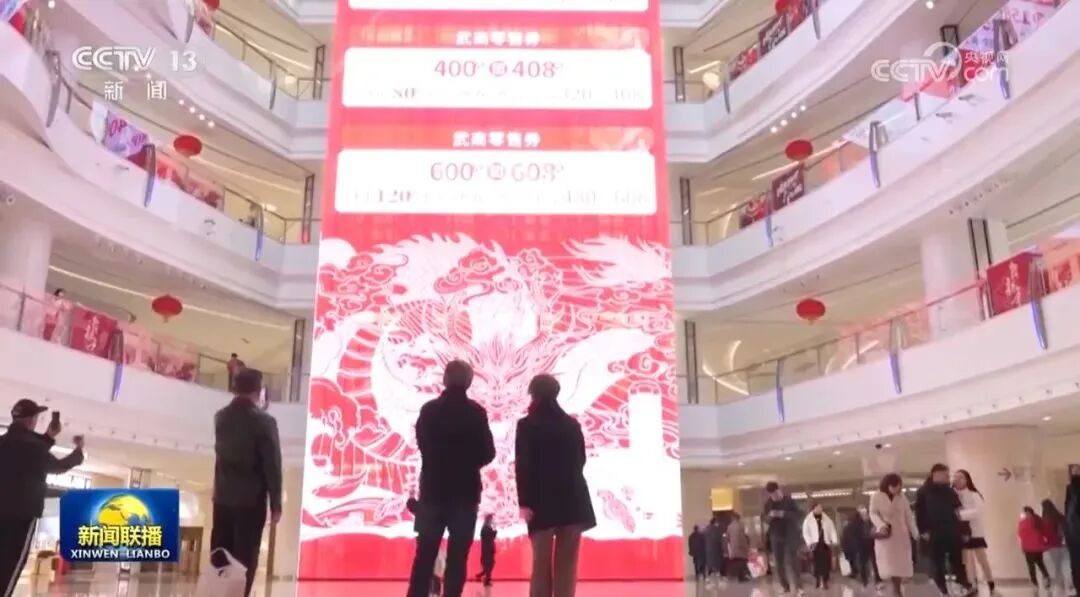 2月16日(大年初七),CCTV-13新闻《新闻联播》聚焦湖北发放新春消费券,武商梦时代推出新春游园会活动。