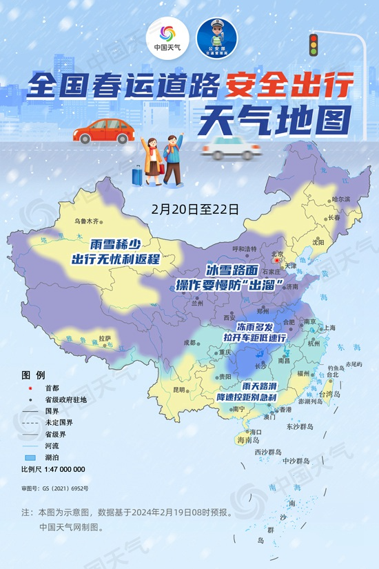 2月21日:北部冻雨或冰粒,夜间山区转小到中雪,南部小到中雨转冻雨或冰粒,偏北风4到6级,阵风7到9级,气温-2~1℃