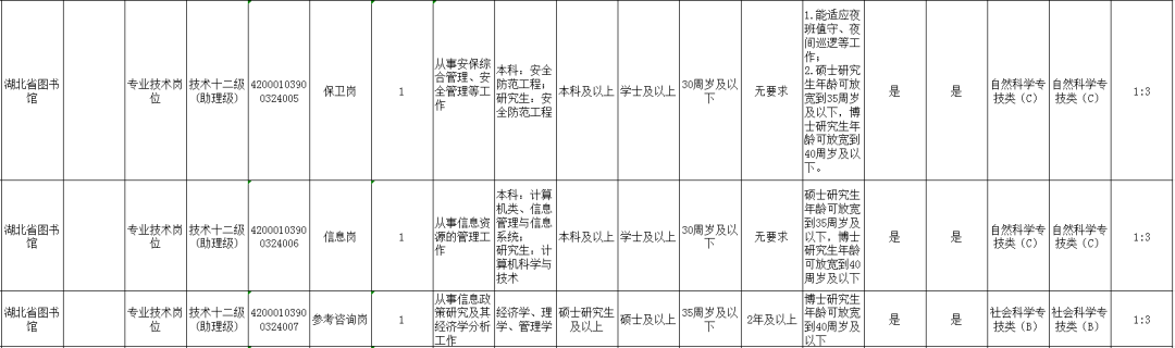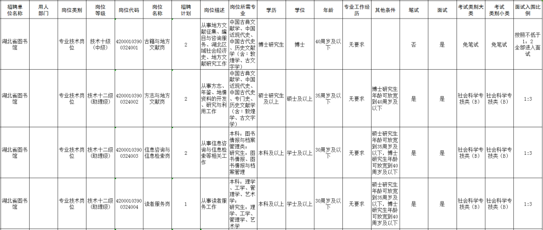 2、岗位描述:从事地方文献征集、编目与咨询服务、湖北区域社会经济史、地方文献研究工作