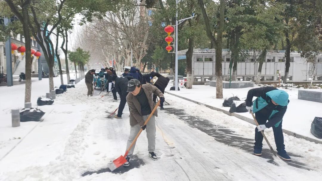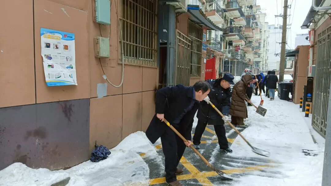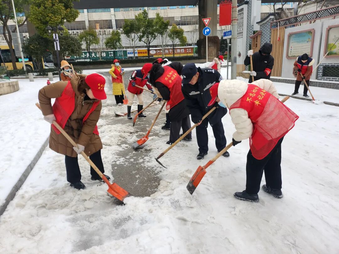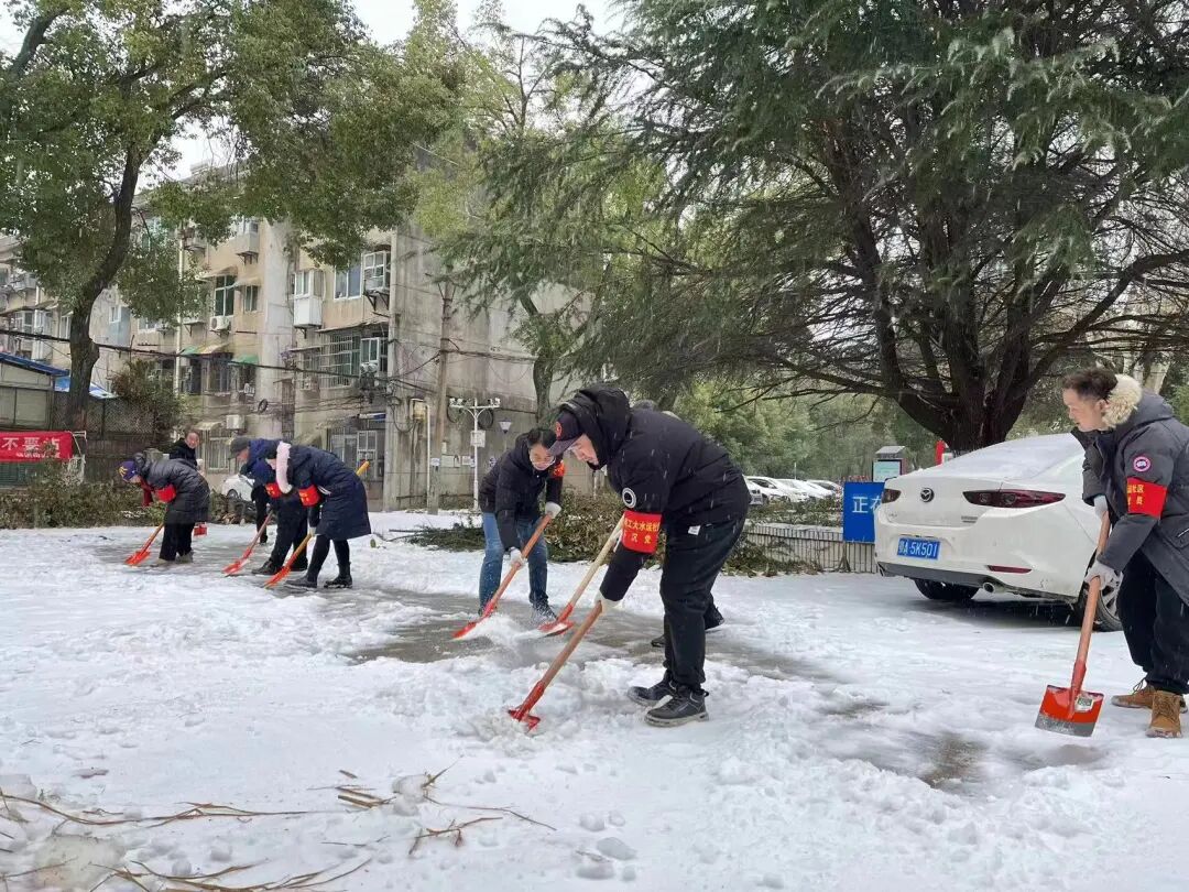 武汉理工大学余家头校区管委会和武汉中学党员干部到武汉理工大学水运社区,清扫铲除学校主干道、居民小区道路积雪,方便师生及居民群众出行。