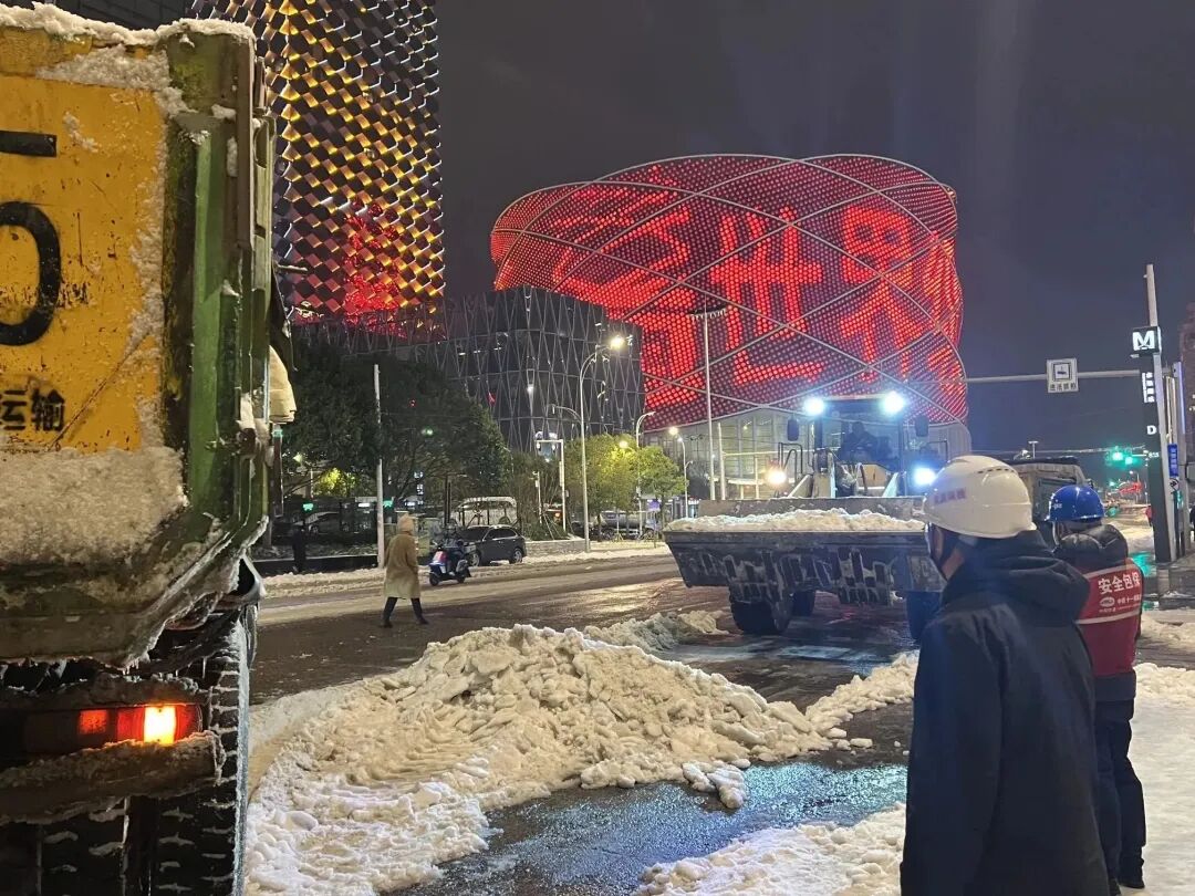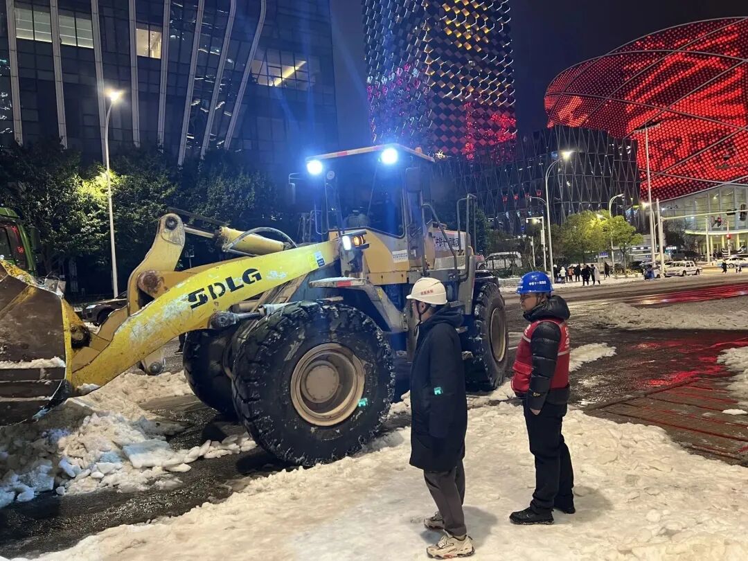 武昌经济开发区管委会和中铁十一局调集大型车辆,在水果湖地区除雪铲冰,保证白鹭街道路畅通。