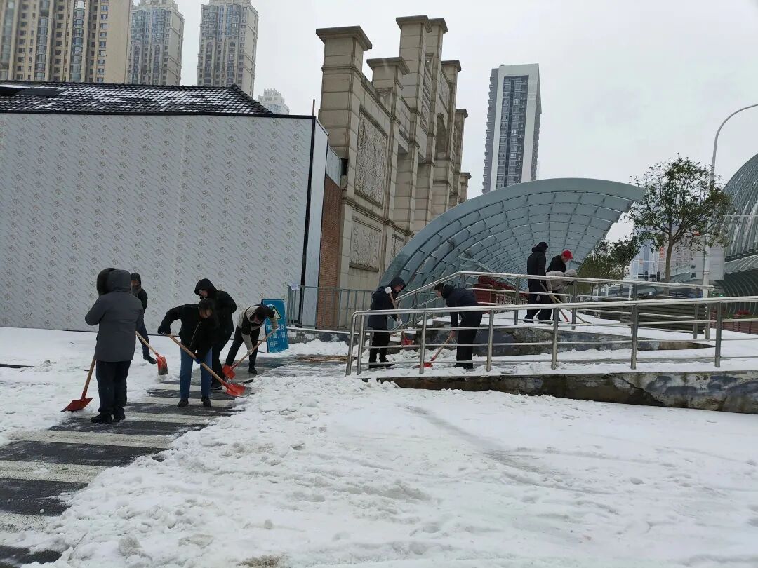 湖北长江产业载体运营管理有限公司组织近二十名职工,协助水果湖街道姚家岭社区在体育馆路、洪山宾馆小区等区域铲雪除冰。