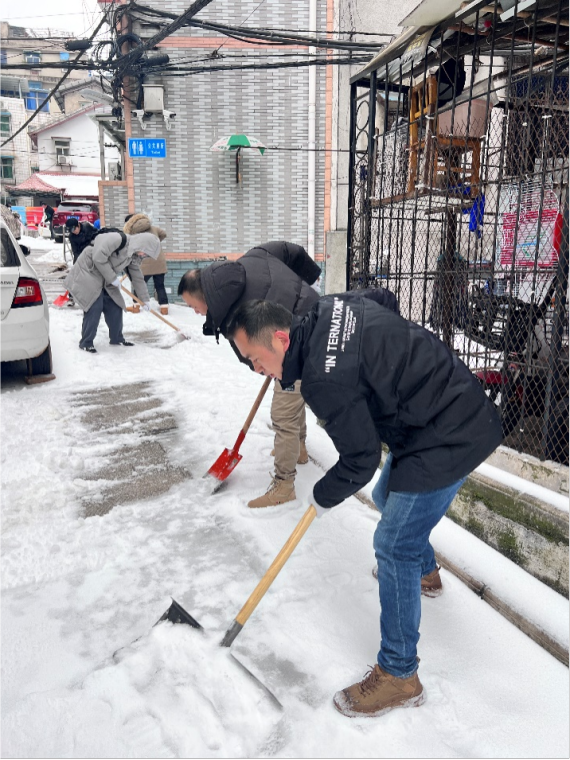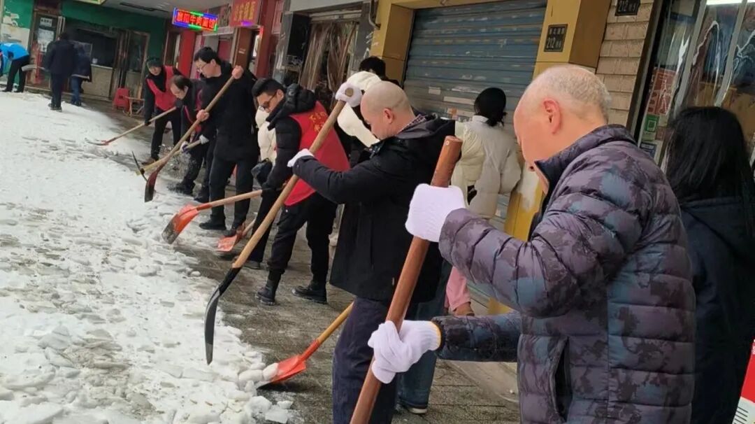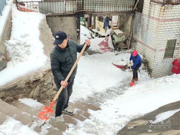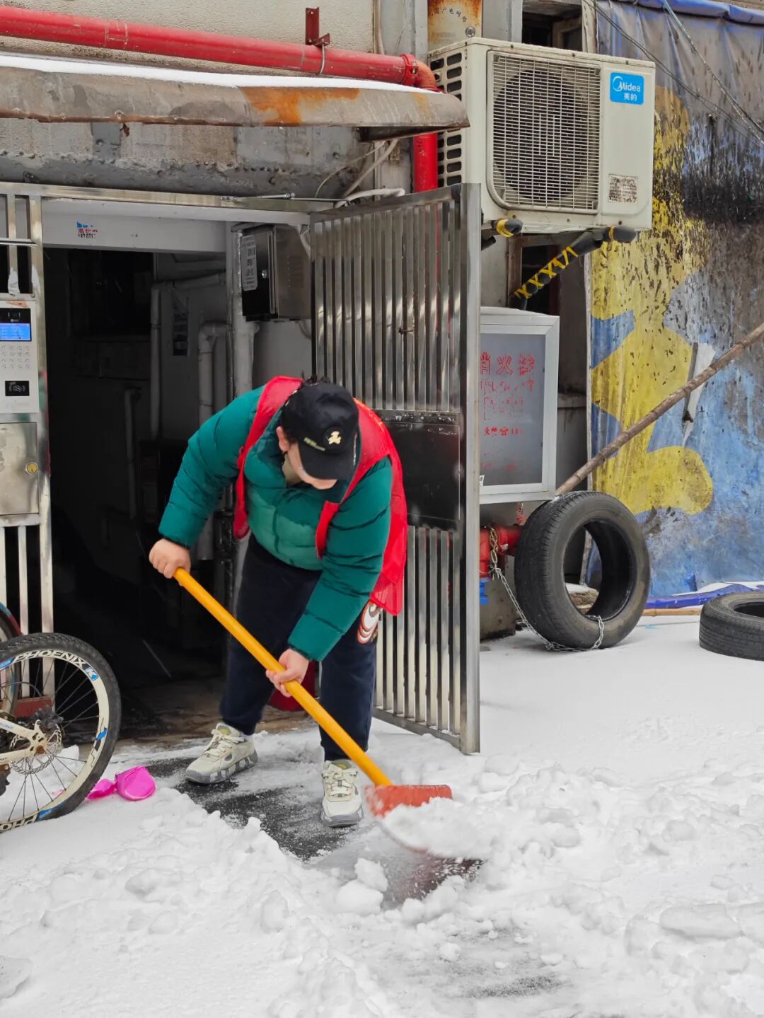 区文旅局全员下沉投身铲雪除冰第一线,在社区出入口、楼栋房前屋后铲出一条条“安心路”。