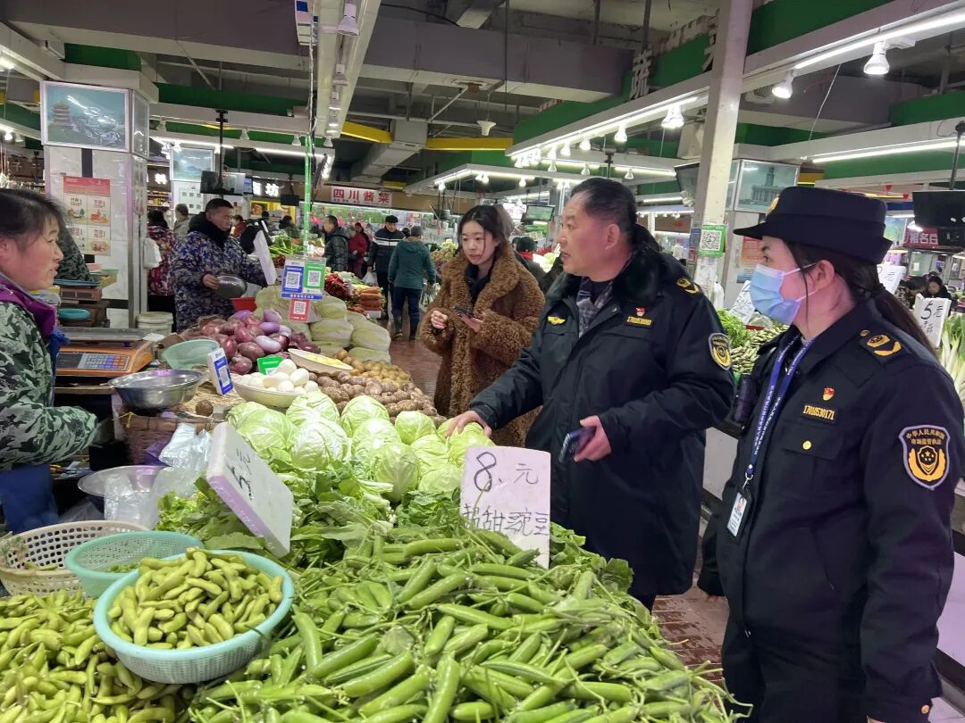 区市场监管局出动人员352人次,使用草袋220余条,清积雪、铺草垫、巡菜价、查电梯,确保雪停路净、菜多价稳、食药安全。