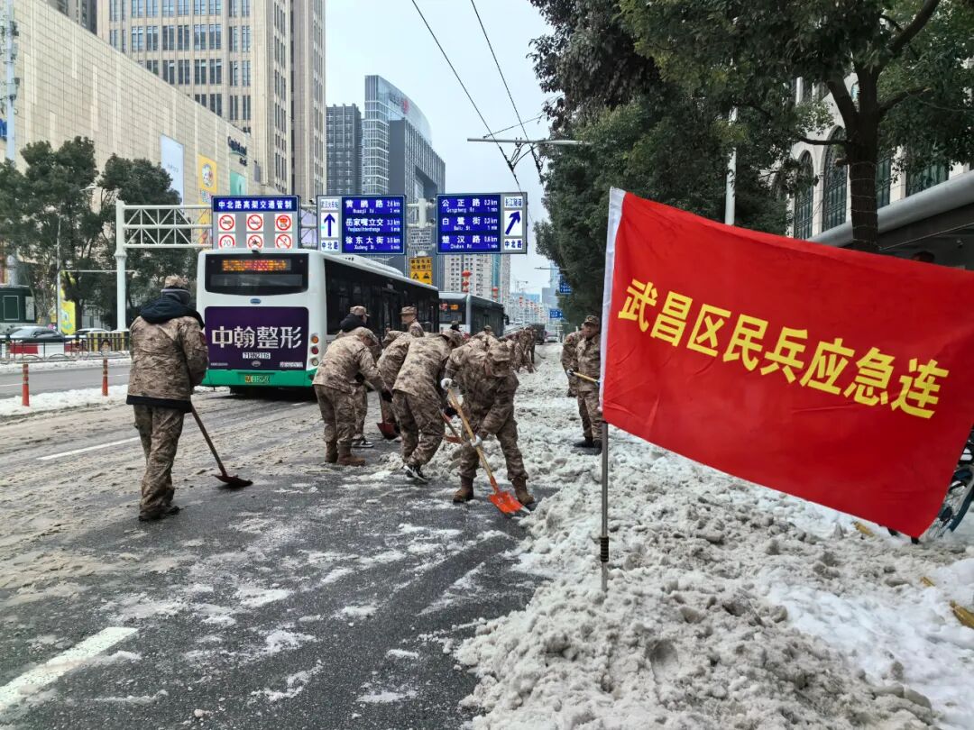 区人武部迅速集结机关干部和民兵应急分队50人,奔赴水果湖街道清雪除冰,经过近5个小时的奋战,完成了指定区域的除雪保畅任务。行动中,人武部官兵还对道路中二十余台受阻车辆进行了施救。