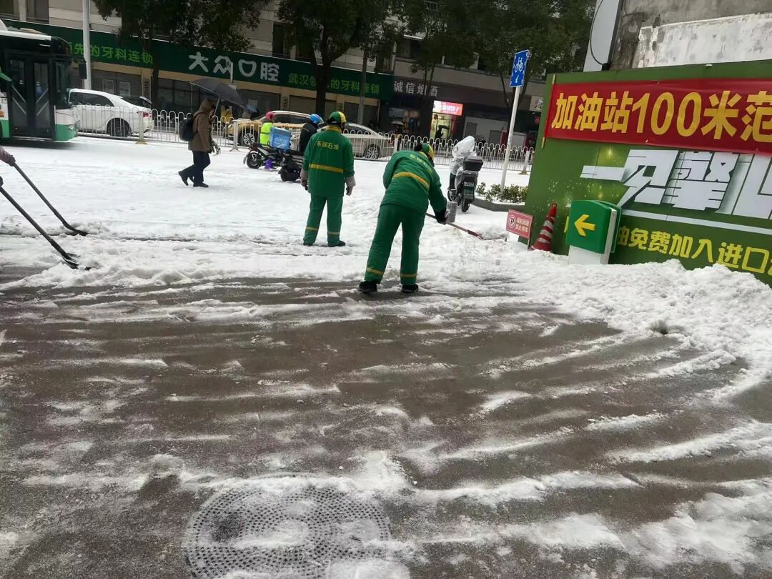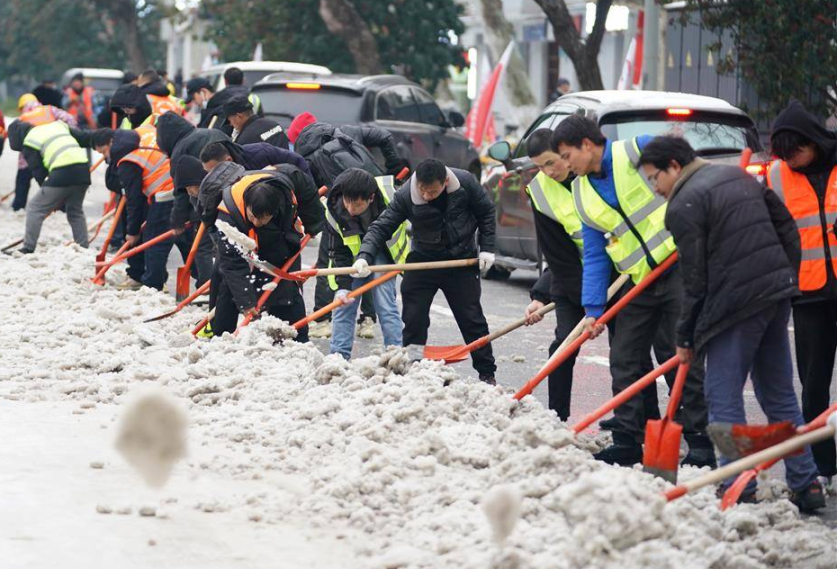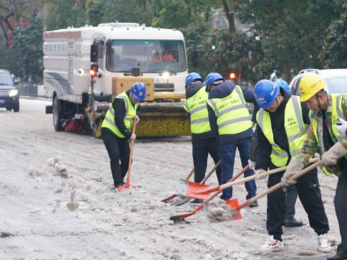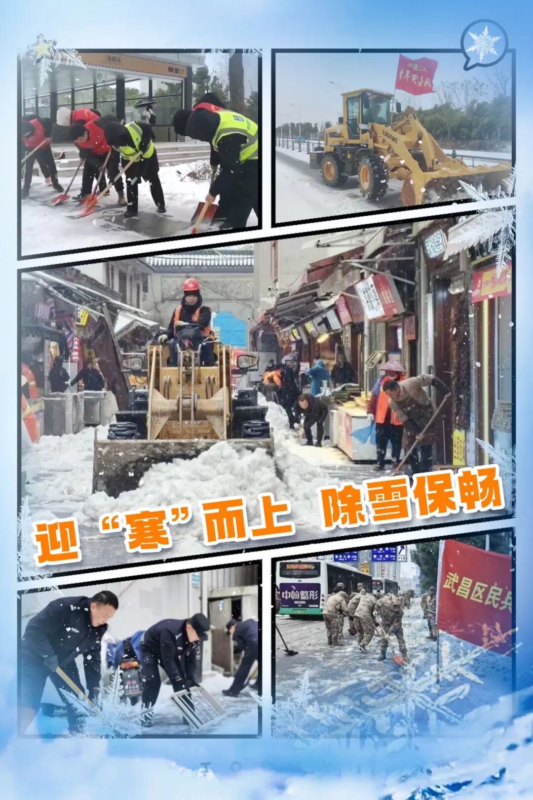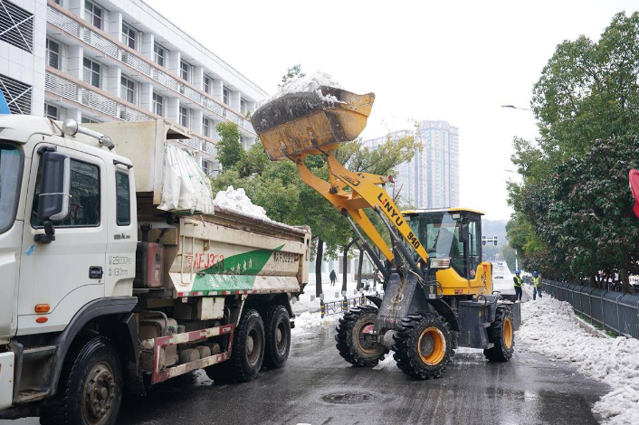 区建设局协调中铁十一局、中建三局铲车13台、渣土车9台,近600人接受统一调配,开展铲雪除冰;带领省工建和其他施工班组,出动铲车4台,完成公正路(友谊大道—体育馆路)扫雪;发动辖区联投中心、联投中北路大厦、高投中心、万达K4、地铁12号线、滨江地下环路、武昌医院等项目参建单位在临江大道、中北路、沙湖大道等区域开展除雪。