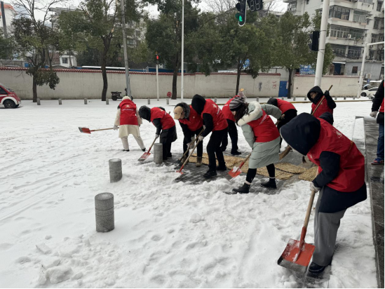 区人力资源局紧急集结40余名党员干部组建“人资惠民突击队”赶赴中南路街道星星社区、南湖街道宝安社区,参与社区扫雪清雪、撒融雪剂、道路巡逻等应急抗寒工作。