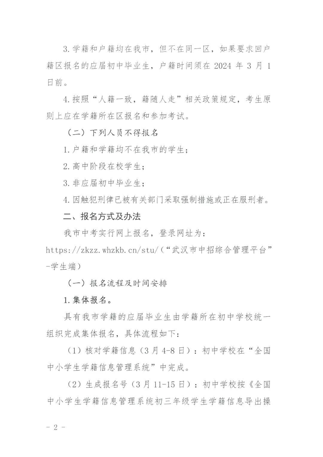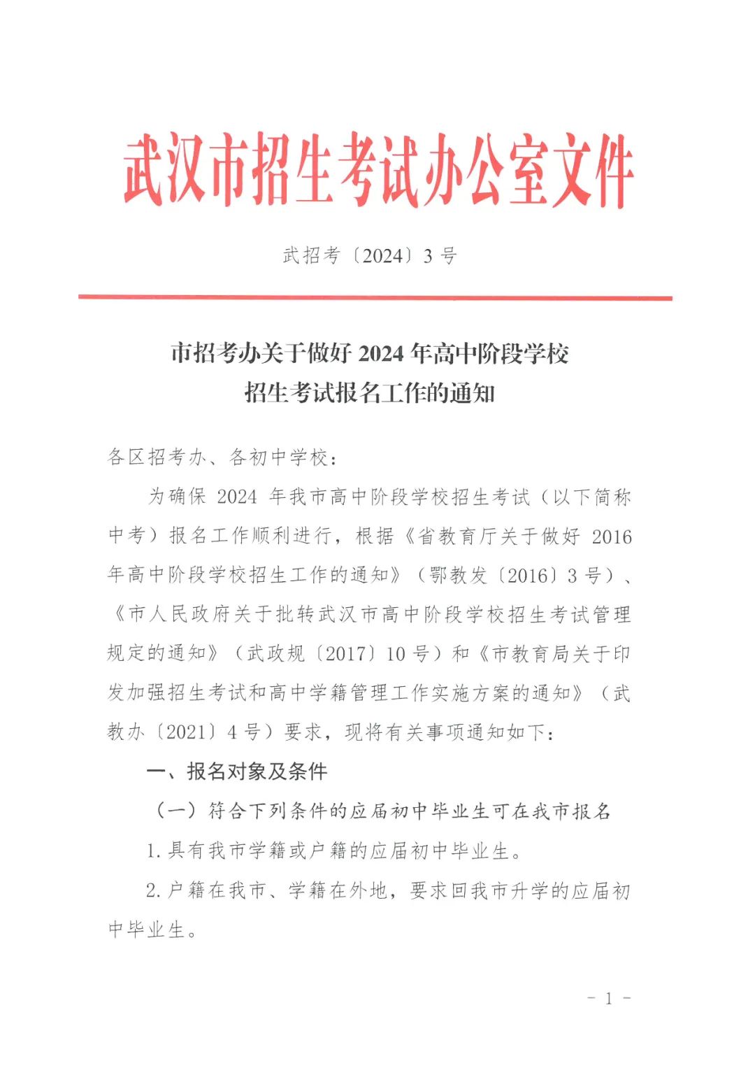 刚刚,武汉招考发布了《市招考办关于做好2024年高中阶段学校招生考试报名工作的通知》