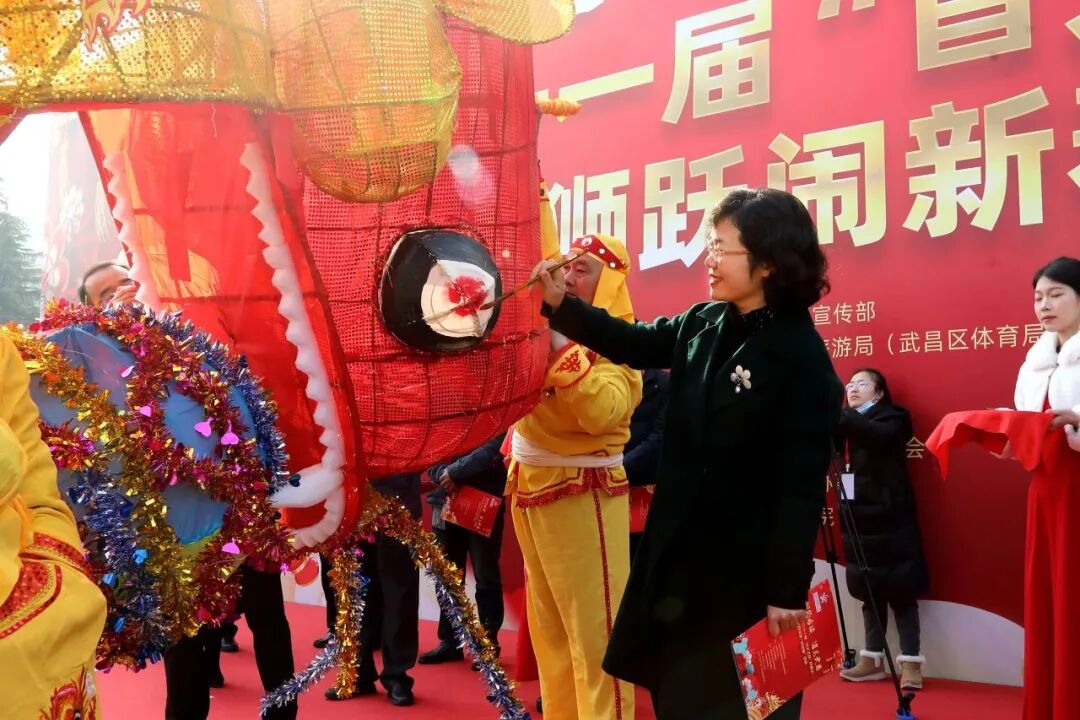 早上10点,活动在武汉市文化和旅游局副局长唐昱,中共武昌区委常委、宣传部部长甘世斌为高龙点睛,武昌区人大常委会副主任刘重武,武昌区人大教科文卫工委主任李艳霞,武昌区文化和旅游局党组书记、局长王娟,辛亥革命博物院副院长刘宏国为飞龙点睛后拉开精彩帷幕。