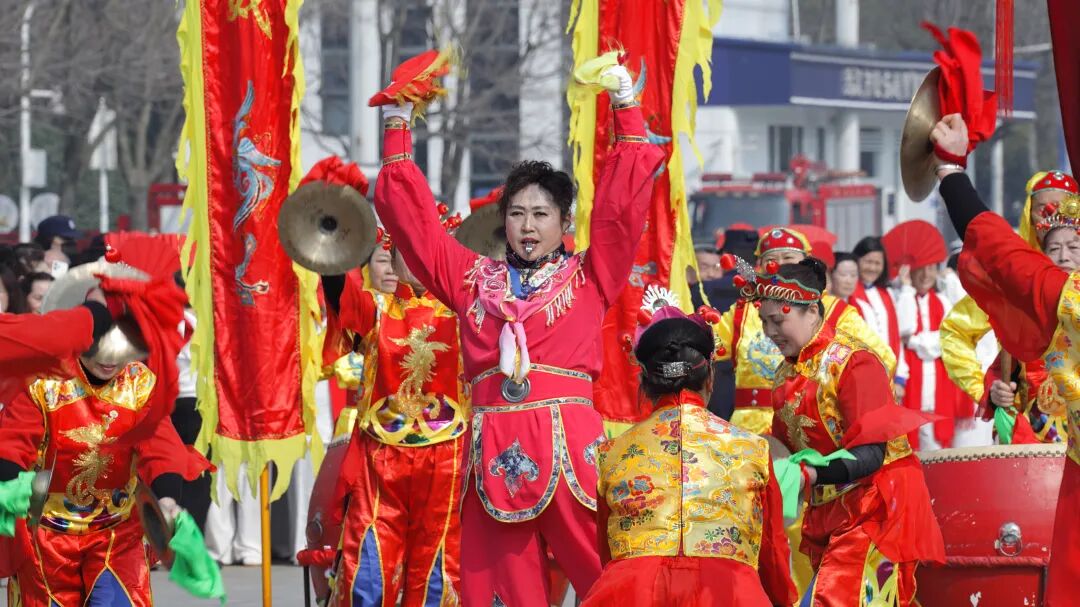 值得一提的是,今年邀请到水果湖街龙飞凤舞健身舞龙俱乐部进行了非遗项目高龙表演。高龙是国家级非物质文化遗产保护项目,起源于唐代贞观年间,现已有1300多年历史。高龙龙头比常规布龙的龙头要高很多,龙头、龙身、龙尾分开。高龙形象高大威猛,舞龙方式奇特,属竖式舞法。随着一阵欢快的锣鼓声响起,高龙表演正式开始。舞龙者们迅速进入状态,他们时而挥舞龙具,时而跳跃翻滚,展现出龙的威严和活力。在表演过程中,持龙头者运用转、扫、举、抖、托、叩等技法,展现出龙头的灵动和威武。观众近距离欣赏到舞龙者的精湛技艺和龙头的精美制作,表演伴随着欢快的锣鼓声和激昂的音乐,营造出浓厚的节日氛围。