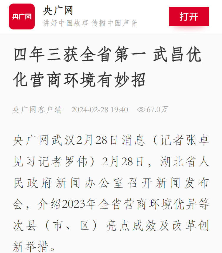 2月28日,湖北省召开“2023年全省营商环境评价结果”系列新闻发布会第二场,武昌区作为县(市、区)优异等次代表介绍优化营商环境亮点成效和改革创新举措。
